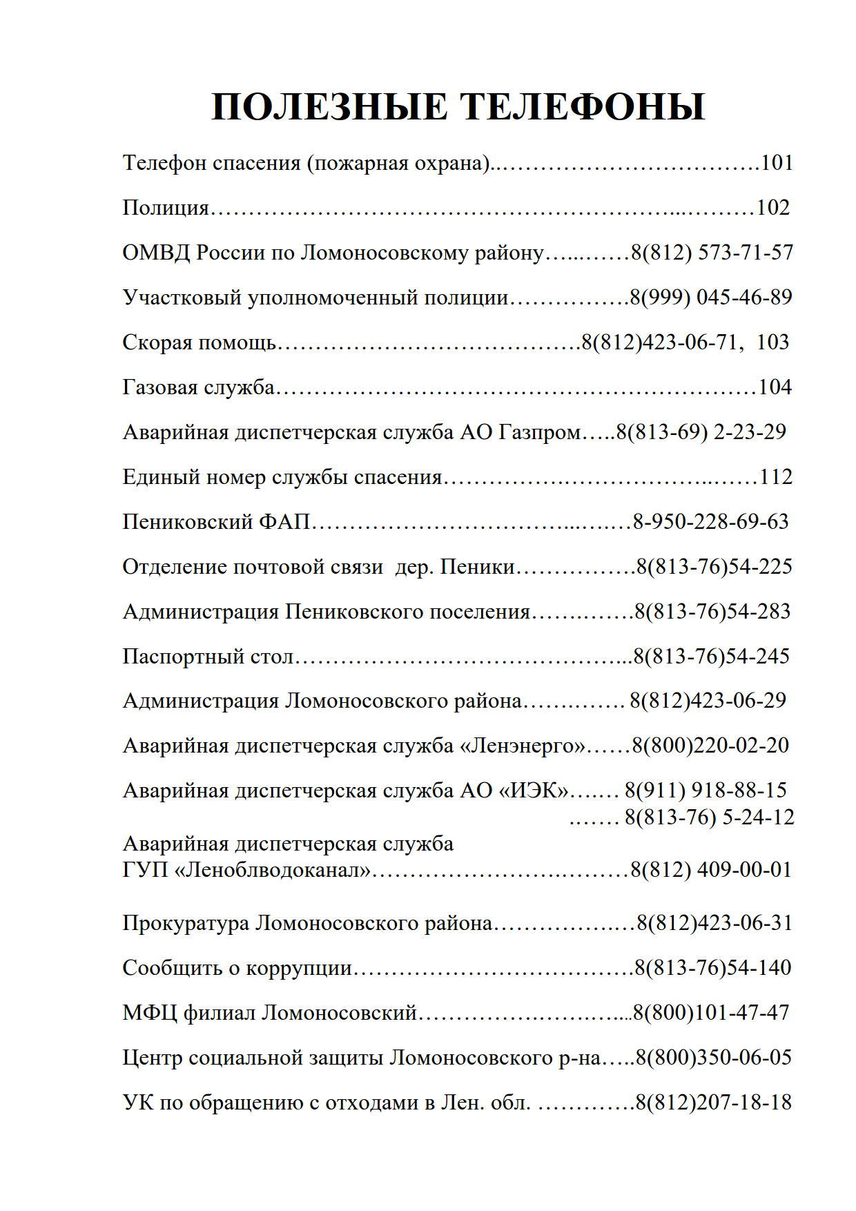 ПОЛЕЗНЫЕ ТЕЛЕФОНЫ