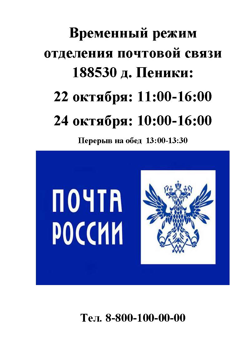 Временный режим работы отделения почтовой связи д. Пеники