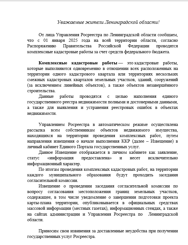 С 01 января 2025 г. проводятся комплексные кадастровые работы за счет средств федерального бюджета Опубликовано 29.10.2025 в рубрике Объявления для населения, Управление Росреестра информирует